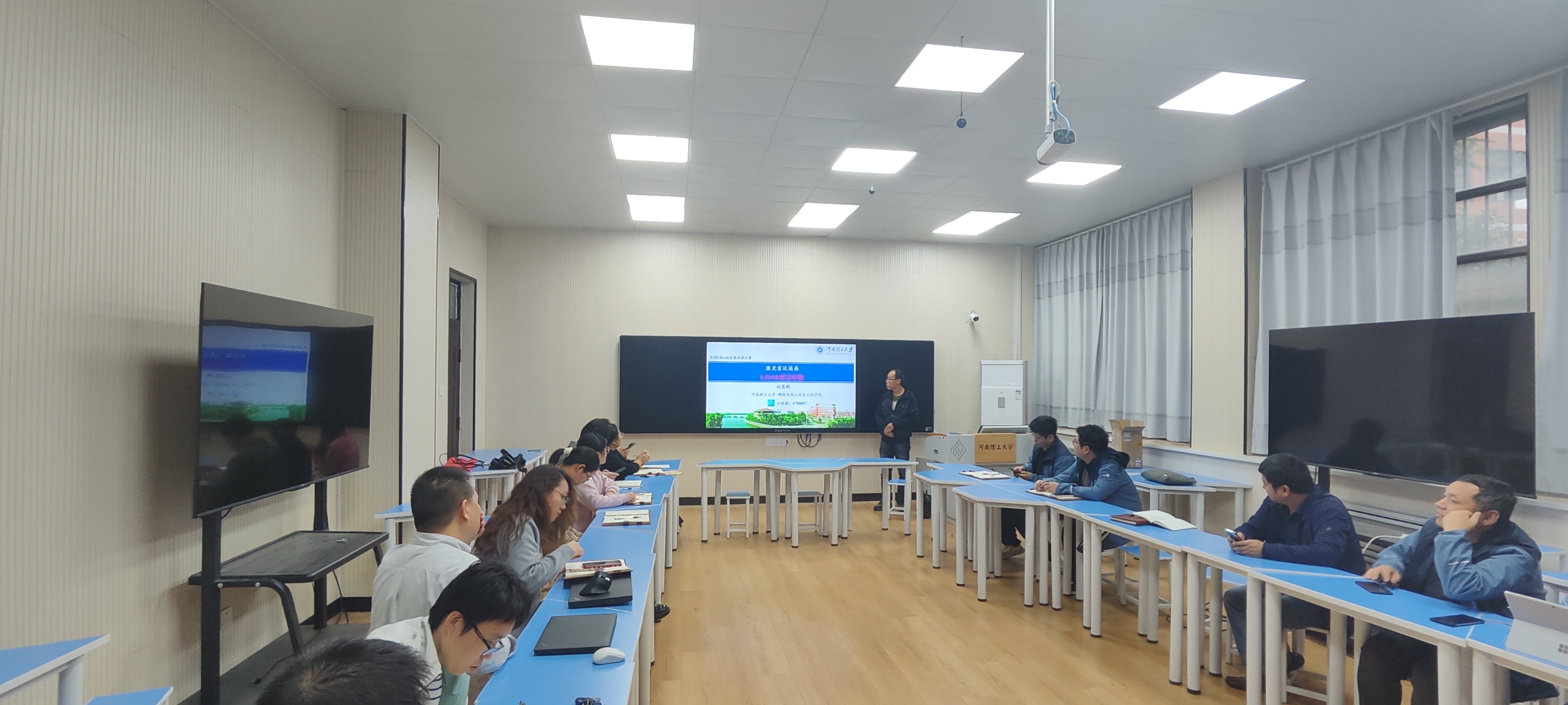 此次活动由青年教师易海杰主持。他指出,近三年来遥感系陆续引进了12名青年教师,如何帮助他们快速适应教学岗位、掌握先进教学方法是支部关注的重点。本次沙龙旨在通过“党建引领+教学研讨”的方式,为青年教师搭建互动平台,营造“以教促研、以研促教”的良好氛围。活动中,河南省高等学校测绘学科教学创新与育才能力大赛青年教师讲课竞赛二等奖获得者李毅夫老师结合参赛经历,分享了教学比赛中的注意事项和心得体会。随后,即将参加第二届(华测导航杯)全国激光雷达遥感课程授课比赛的赵翼鹏老师展示了参赛PPT。与会教师围绕课程导入、算法讲解、案例分析等环节展开热烈讨论。校师德标兵、全国第四届全国高校教师教学创新大赛三等奖获得者成晓倩老师从教学逻辑、内容呈现、互动设计等方面提出中肯建议。