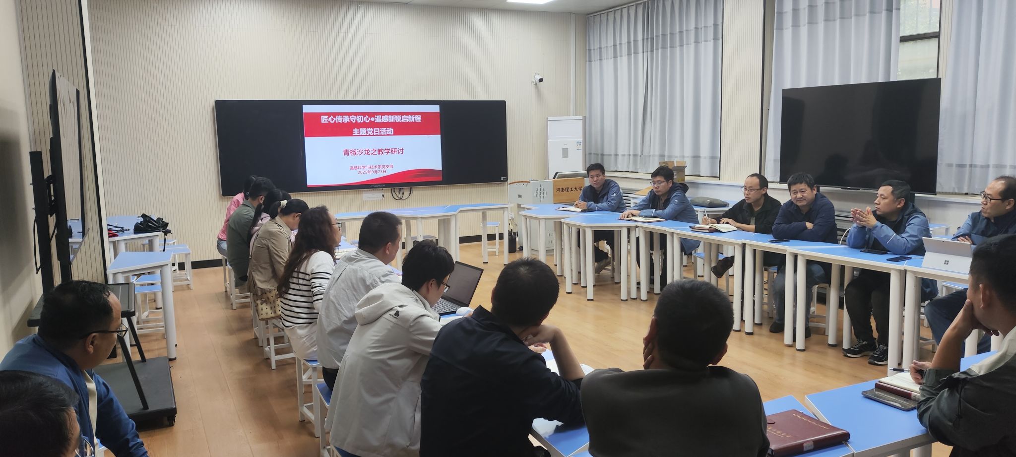 227组织开展了“匠心传承守初心·遥感新锐启新程-青椒沙龙之教学研讨”主题党日活动。本次活动聚焦青年教师教学能力培养,围绕教学比赛经验分享、课程设计优化、教学方法创新等内容展开深入交流。