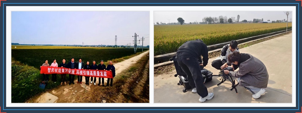在王福军与王会平的带领下,全体党员同志深入田间地头,实地考察了合作社规模化、生态化的水稻种植示范田以及引黄灌渠设施。合作社依托黄河过境的水资源优势,建成了标准化引黄灌渠,既保障了水稻生长需求,又践行了黄河流域“节水优先、量水而行”的生态理念。黄河流域研究中心党支部书记肖东洋讲解了无人机设备获取农田表型信息的数据采集过程,分享了如何通过数据化手段提升种植管理效率。党员同志纷纷表示,此次田间考察让理论研究“接地气”,更直观地感受到黄河水资源与农业发展的紧密联系,为后续开展黄河流域耕地保护、农业高质量发展研究提供了鲜活案例。