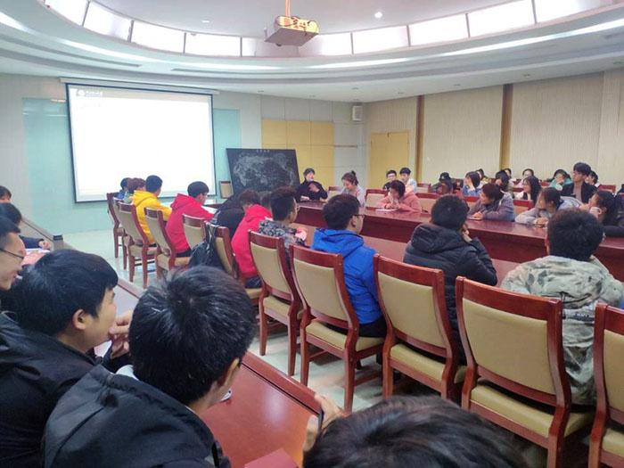 一楼会议室以《做一个有大格局、大情怀、大作为的大写的人》为题开启专题讲座。2018级辅导员闫芮和测绘专业1-4班全体学生参加了本次讲座。